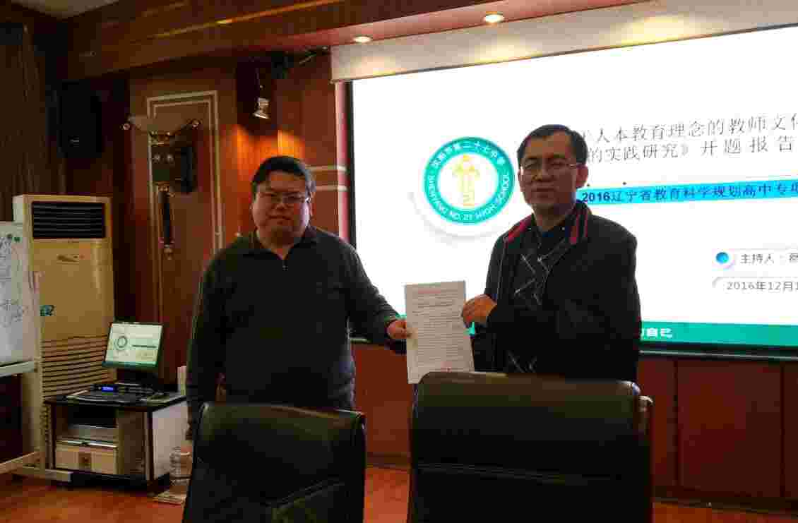 2016年12月21日,由沈阳市第二十七中学葛海丰校长主持的2016辽宁省教育科学规划高中专项课题《基于人本教育理念的教师文化创新的实践研究》隆重开题。沈河区教师进修学校党总支邵佩萱书记、科研部卢骏主任、负责省级课题的黄艳老师参加了开题会并就课题开题报告进行了论证指导。